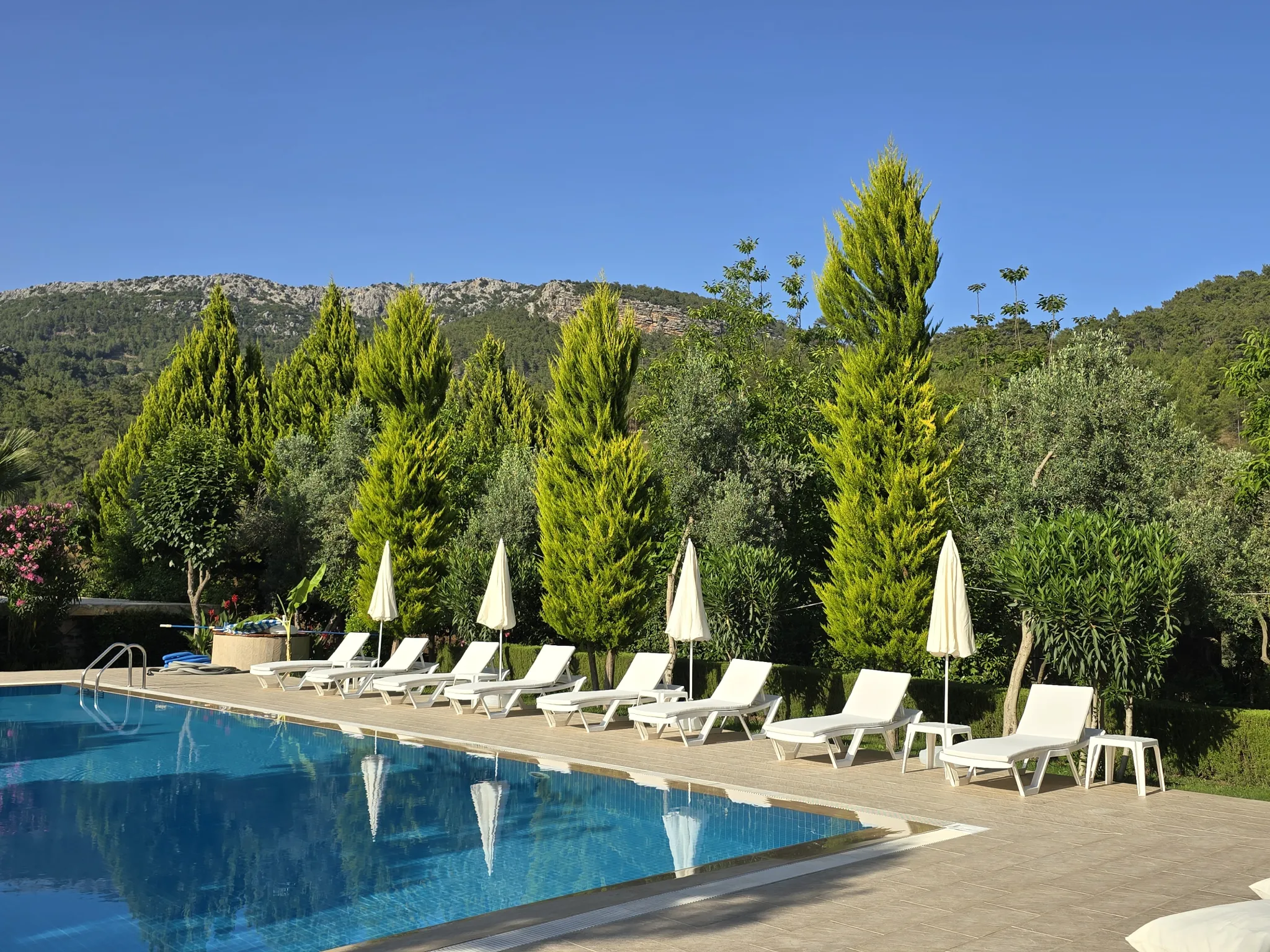 Zeytin bahçesinin içinde konumlanan odalarımız, sakin bir konaklama deneyimini bahçe ve havuz manzarasıyla birleştiriyor.